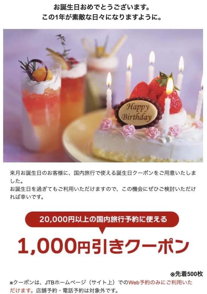 実は、JTBは初めての方には非常に優しいのです。なぜなら初回クーポンがあるからです。