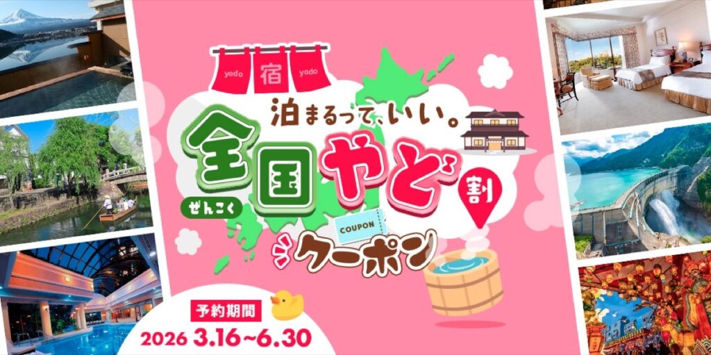- 国内宿泊 [対象宿泊期間]2026年3月13日(金) ~ 2027年2月28日(日)宿泊
