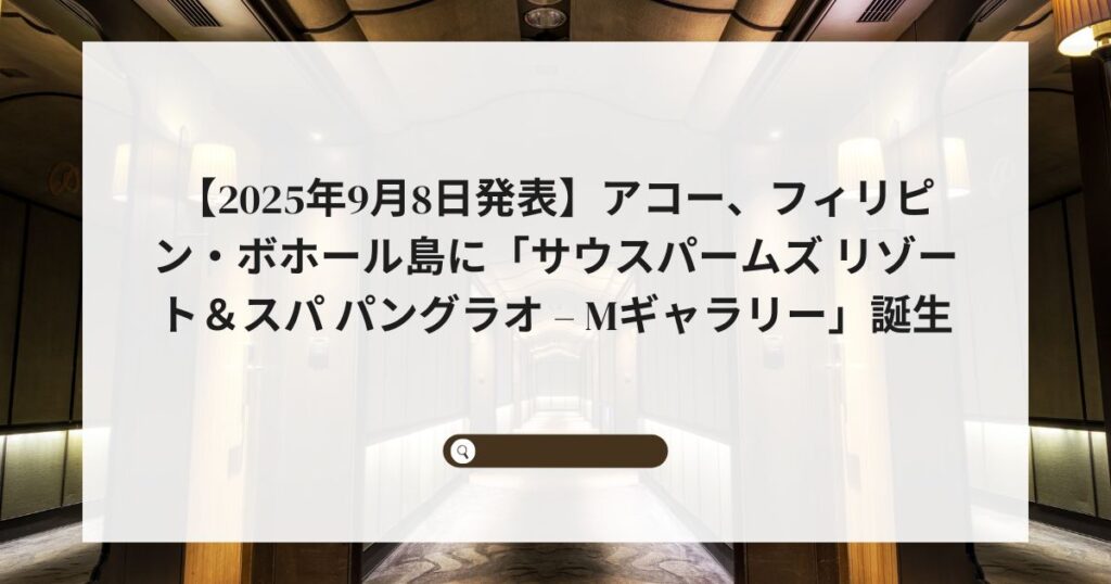 フランス・アコーホテルズ傘下のラグジュアリーブティックブランド MGallery Collection(エムギャラリー コレクション) が、フィリピン・ボホール島のパングラオに新たな旗艦ホテルを開業しました。その名も 「South Palms Resort & Spa Panglao – M...