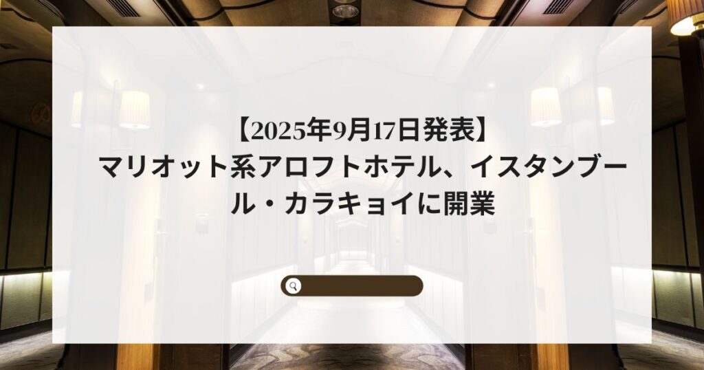 マリオット・インターナショナルは2025年9月17日、ライフスタイルホテルブランド「アロフト(Aloft Hotels)」の新規開業を発表しました。開業地はトルコ・イスタンブールのカラキョイ地区で、「アロフト イスタンブール カラキョイ(Aloft Istanbul Karak... -