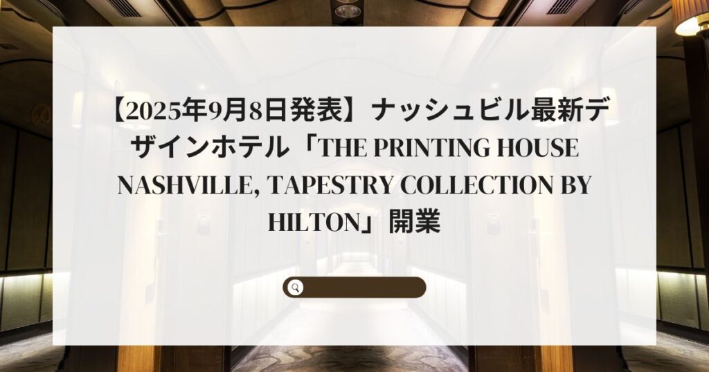 ナッシュビル南部の急成長エリア・サウスバンクに、ヒルトングループの新しいライフスタイルホテル「The Printing House Nashville, Tapestry Collection by Hilton」が2025年9月8日にグランドオープンしました。歴史ある印刷業の街並みと音楽の文化が息づ... -